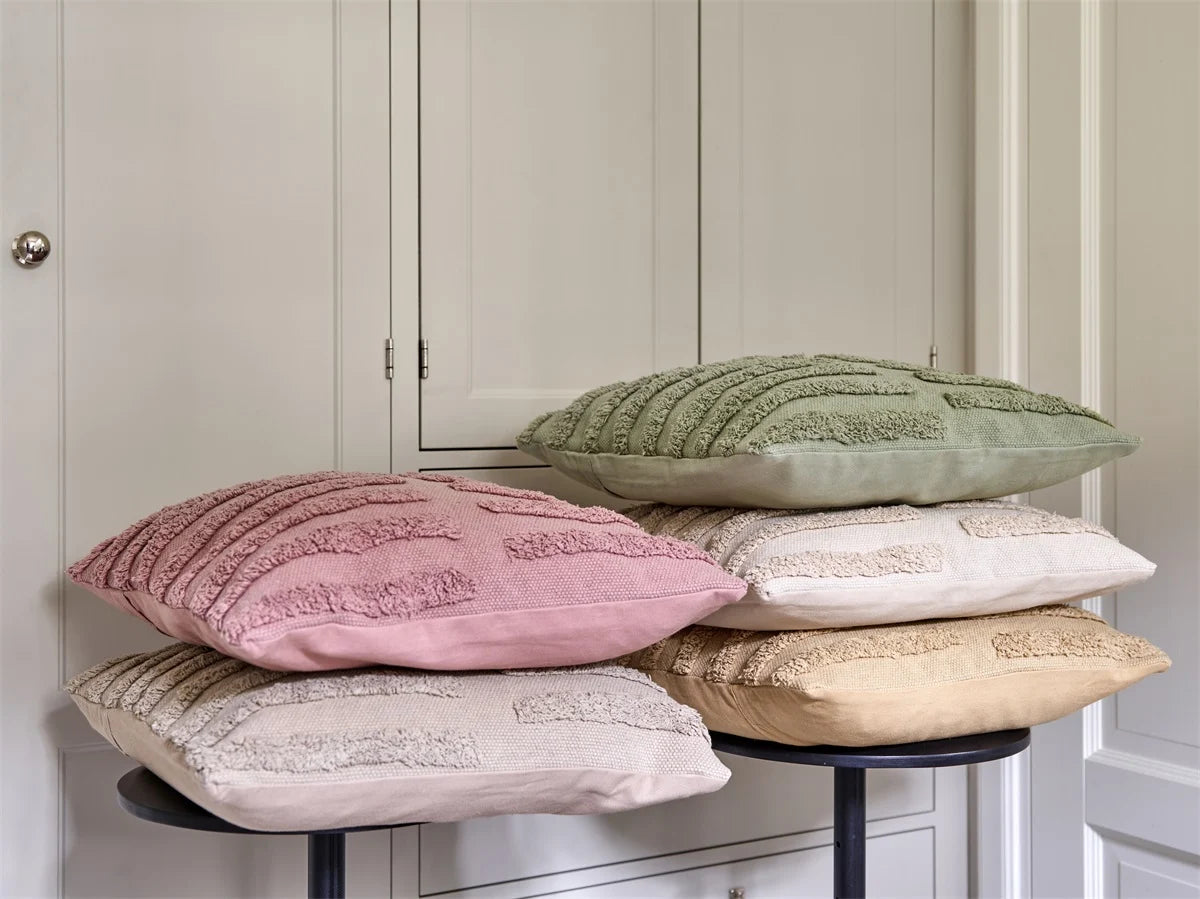 Beskrivning | Tufftade enfärgade kuddfodral. |