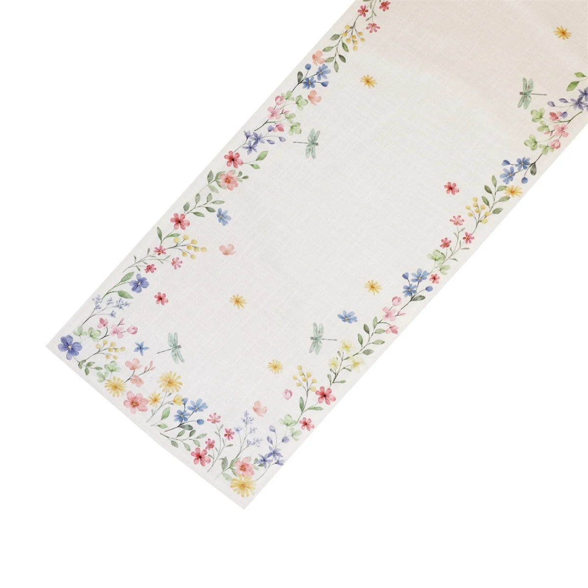 En vacker löpare med en tryckt ram runt i form utav blommor och trollsländor.