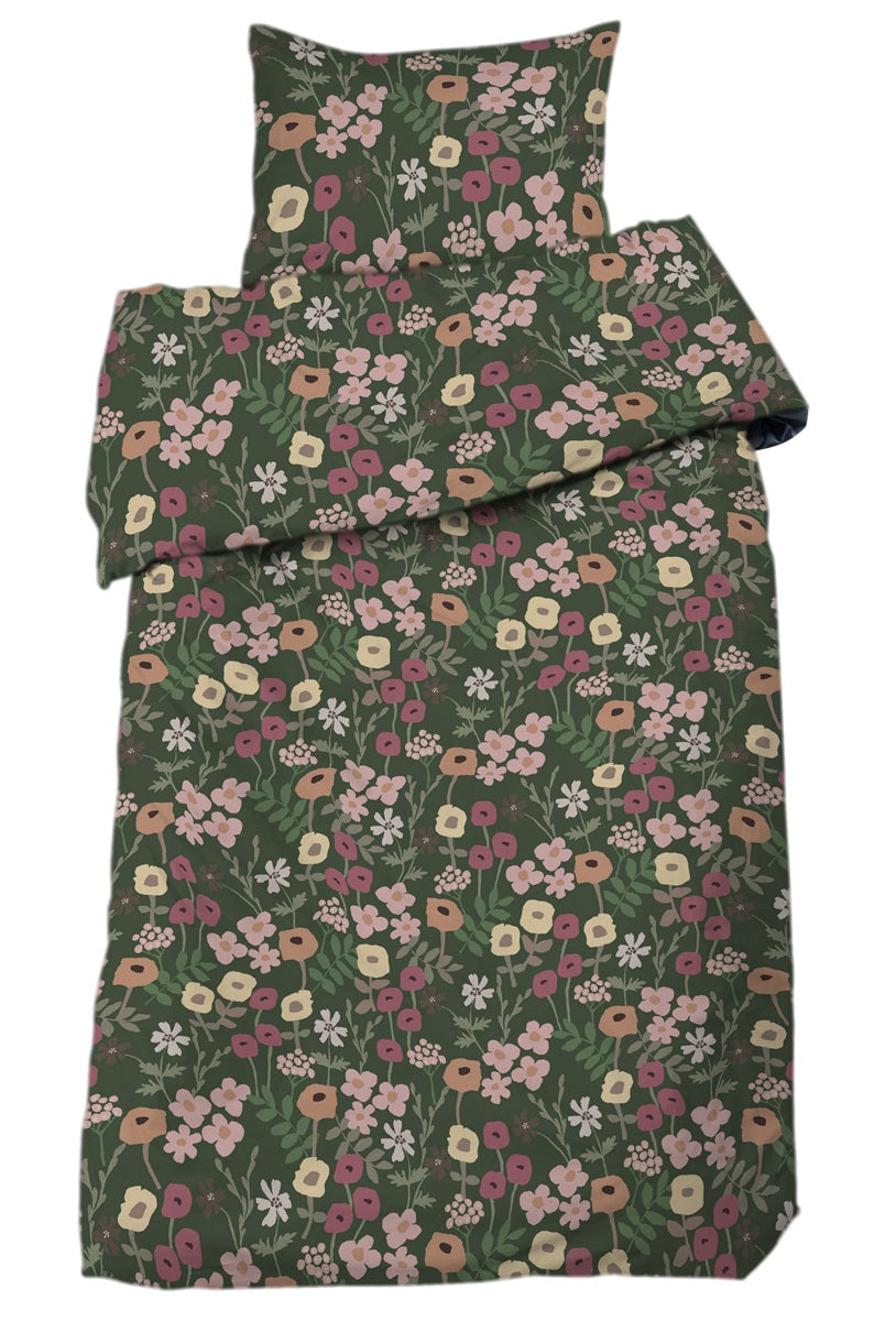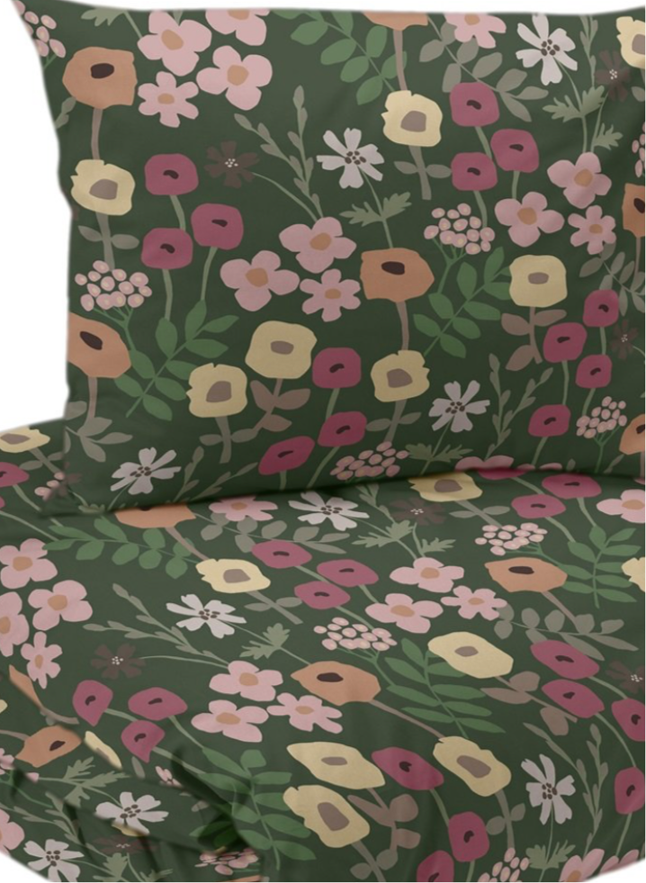 Beskrivning | 2-dels bäddset i blommigt mönster skapat av svensk designer. Trådtäthet 104. |