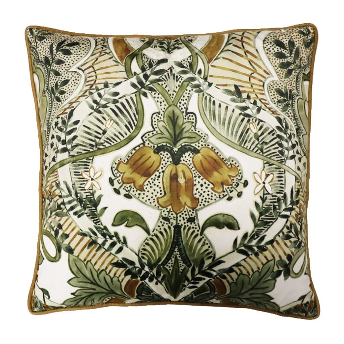 Beskrivning | Sammets kuddfodral med tryck på båda sidor samt enfärgad passpoal. |