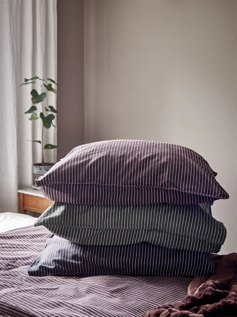 Beskrivning | Vackert randigt bäddset med jeanssöm i 2 delar i vintage tvättad bomull för en extra mjuk och skön känsla. 100% BCI bomull och trådtäthet 132. |