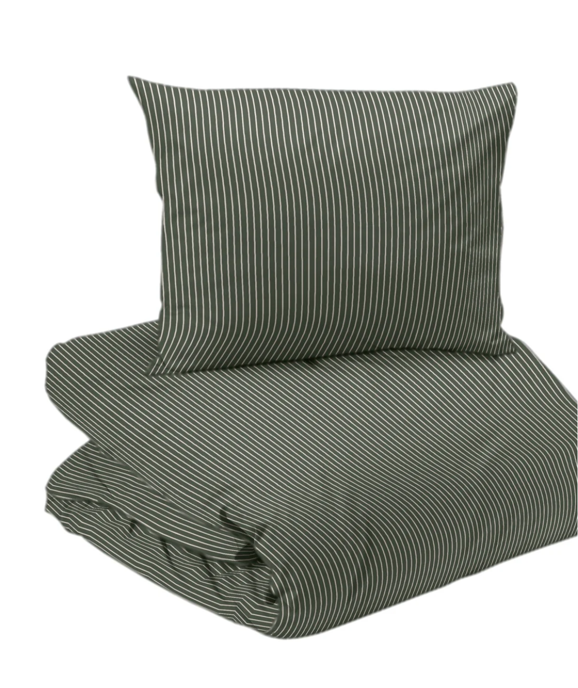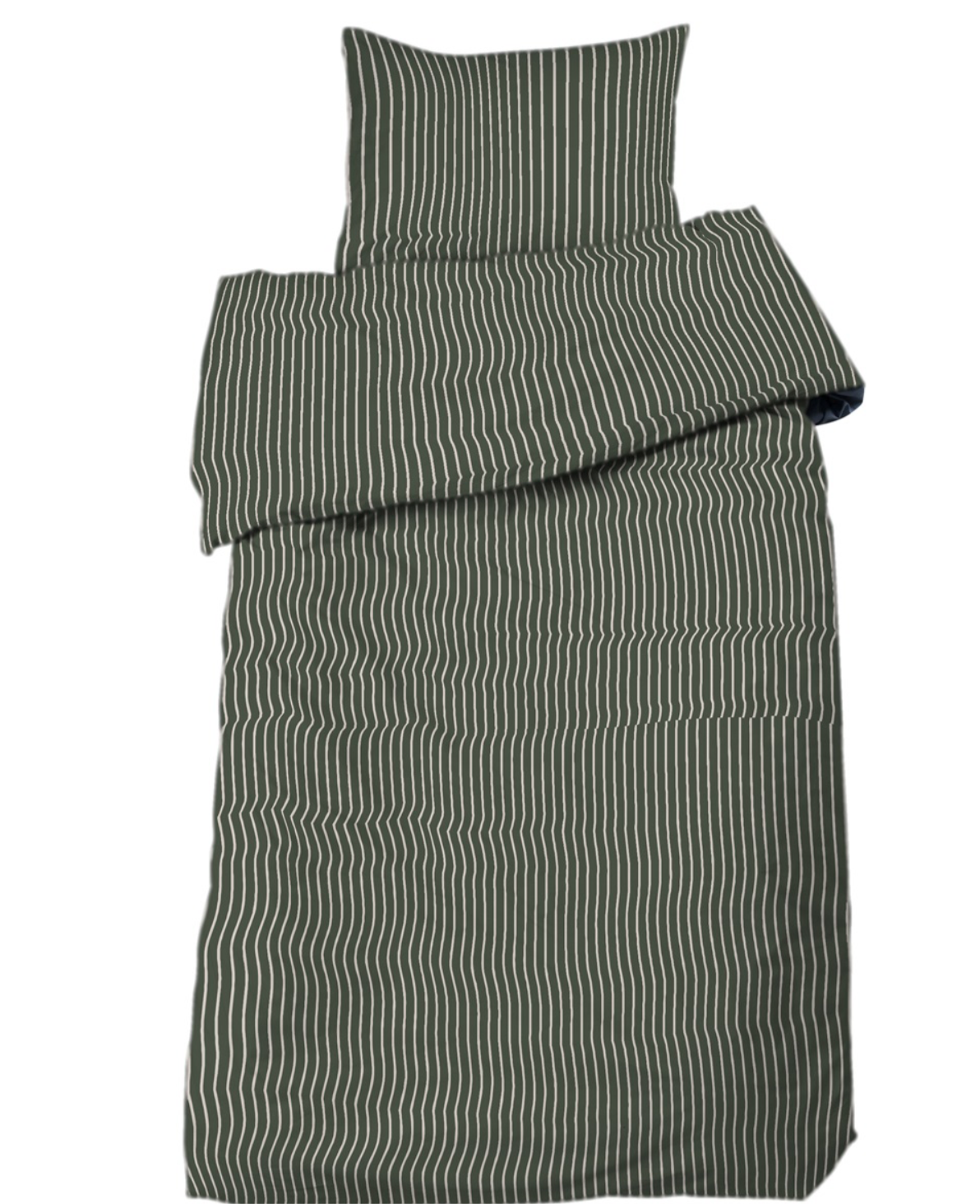 Beskrivning | Vackert randigt bäddset med jeanssöm i 2 delar i vintage tvättad bomull för en extra mjuk och skön känsla. 100% BCI bomull och trådtäthet 132. |