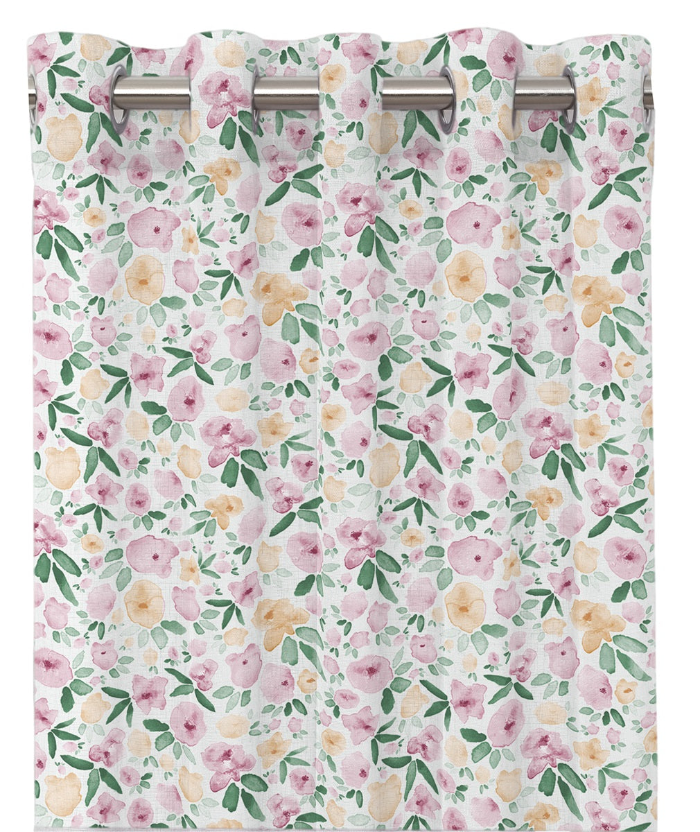 | Beskrivning | Öljettlängder med vackra blommor, overlock nertill. |