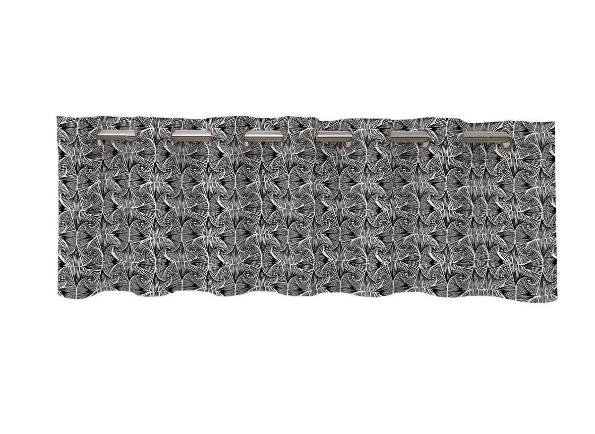 Beskrivning | Färdigsydd öljettkappa med svart/vitt grafiskt mönster. |