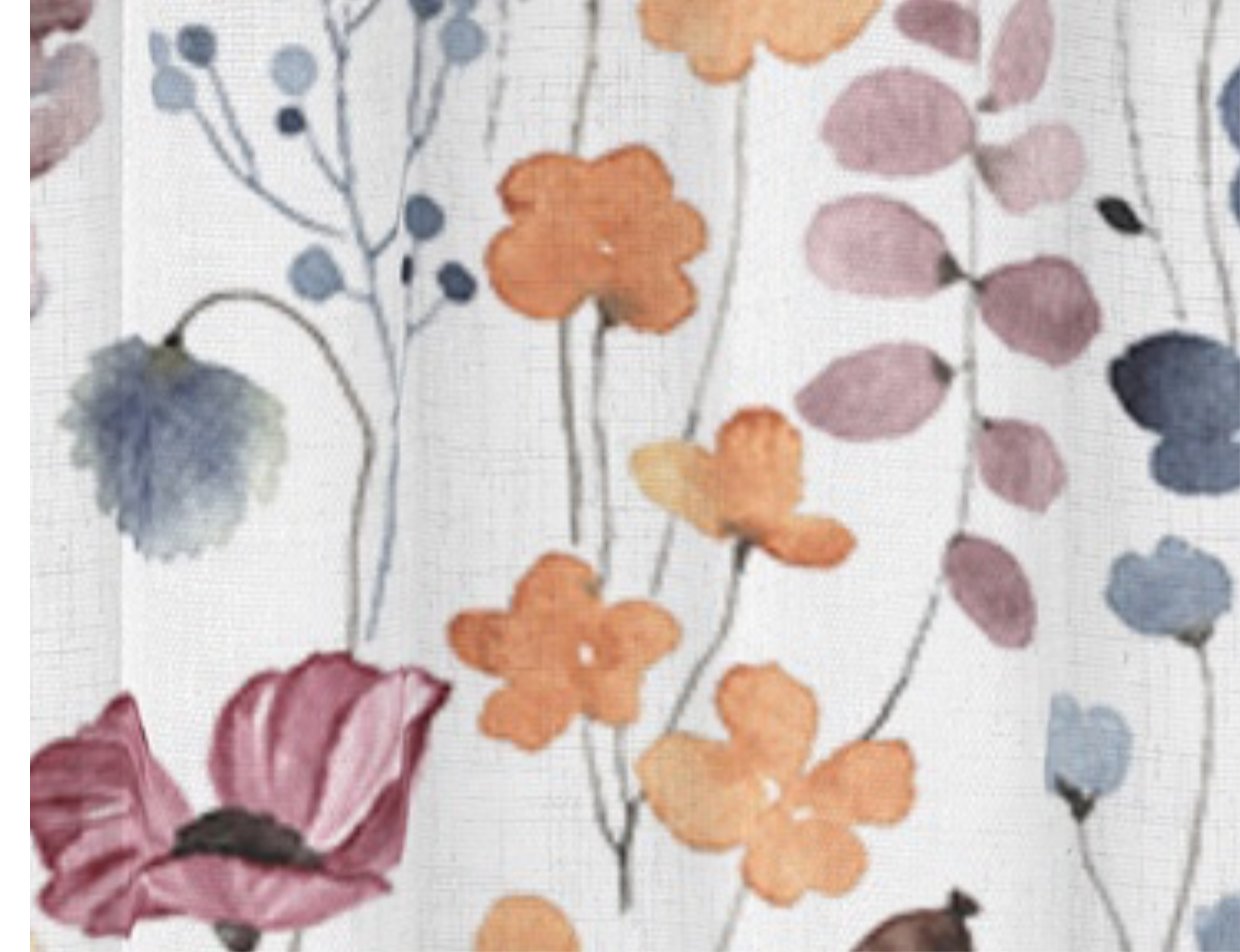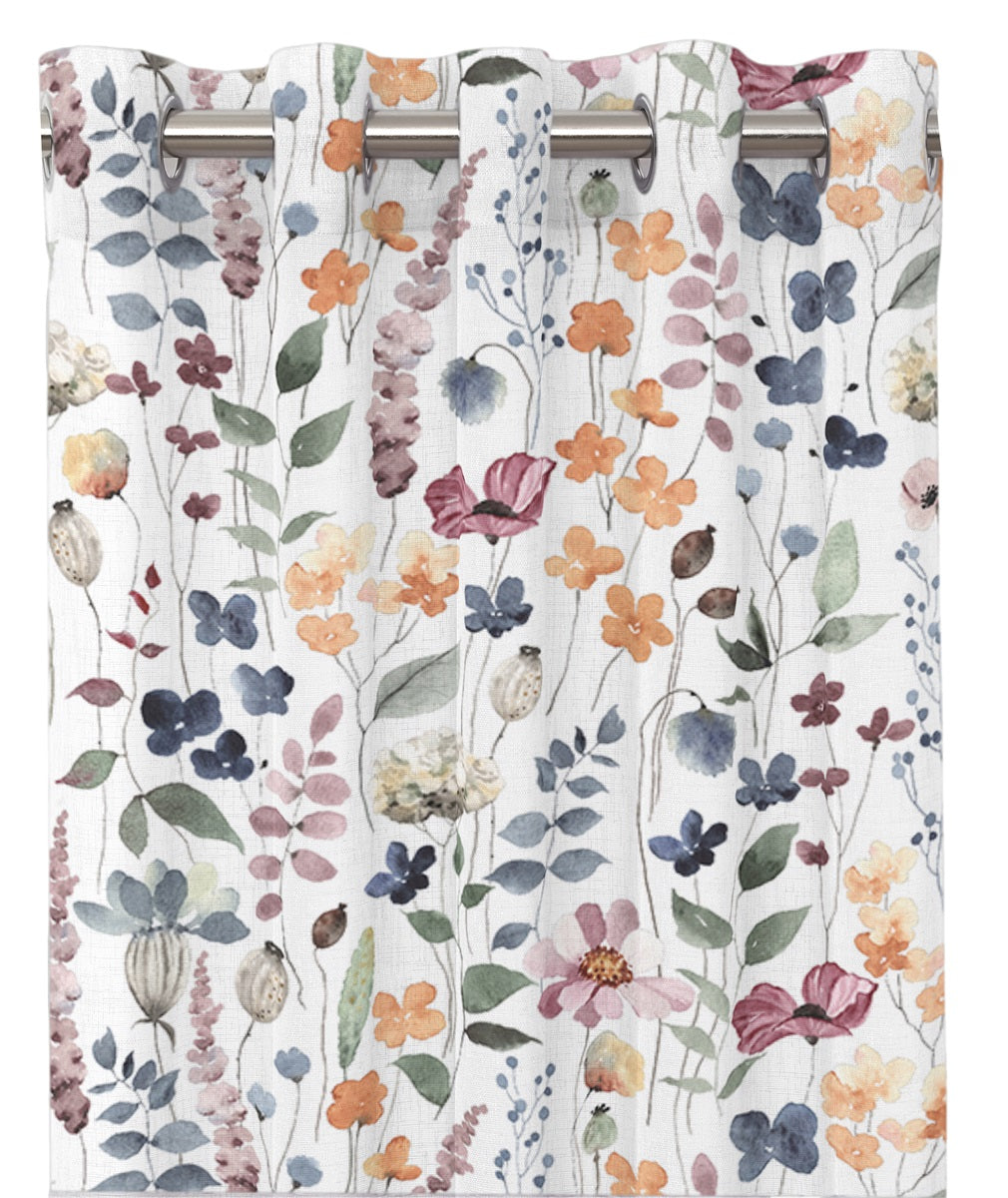 Beskrivning | Multifärgade öljettlängder i ett härligt mönster. Tryckt på vår Pariskvalité med slubeffekt, overlock nertill. |